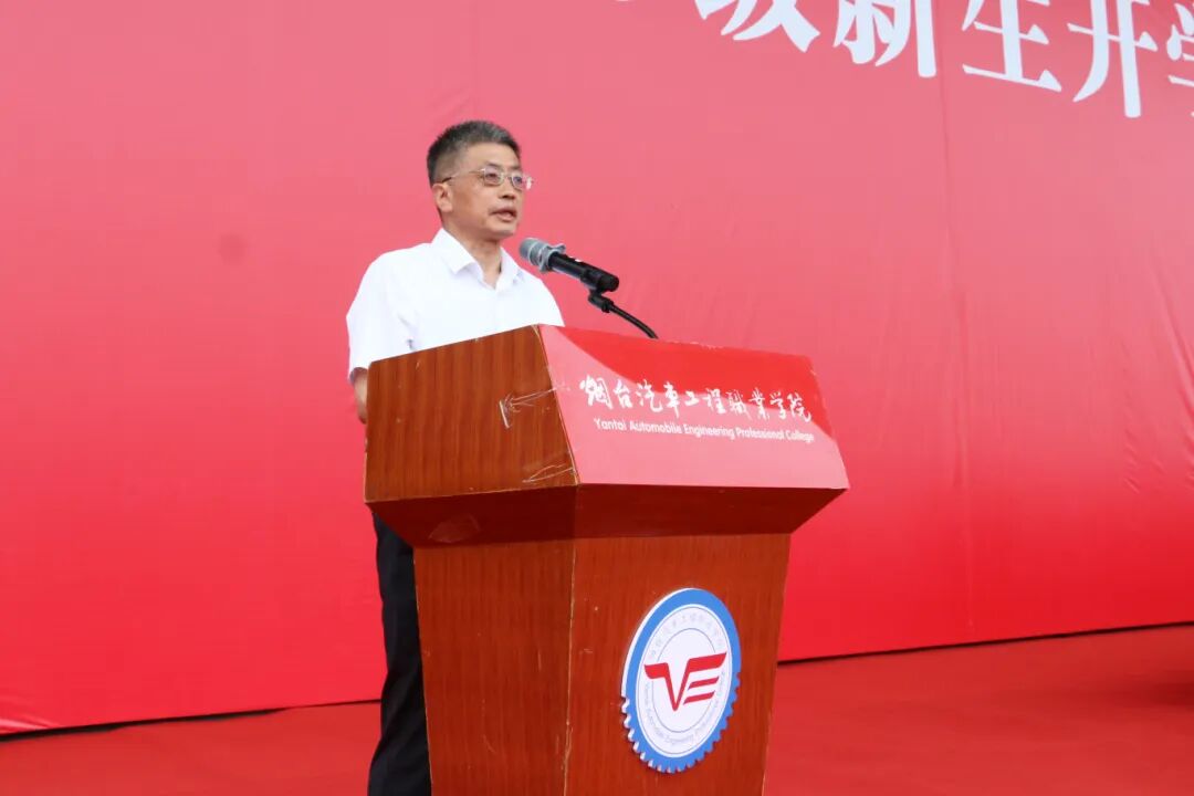 近日,烟台汽车工程职业学院在学院东体育场举行2025级新生开学典礼暨动员大会,烟台汽车工程职业技术学院党委书记秦桂建,烟台汽车工程职业技术学院院长郭峰以及学校各部门、单位的负责同志出席大会。2025级全体新生、新生辅导员和班主任等参加大会。大会由烟台汽车工程职业学院副院长王世江主持。