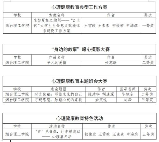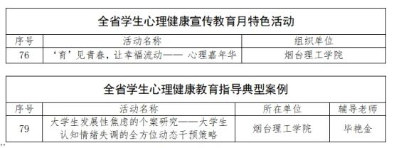 近日,烟台理工学院在2025年心理健康月活动中累计荣获省级奖项7项,充分展现了学校心理健康教育工作的卓越成效。
