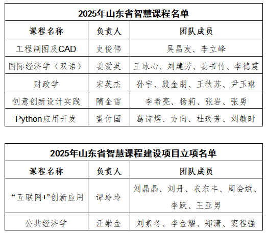 近日,山东省高等教育学会(山东省高等学校课程联盟)正式公布了2025年度省级智慧课程认定结果,山东工商学院申报的《工程制图及CAD》等5门课程全部获评为山东省智慧课程,同时申报的《“互联网+”创新应用》等2门课程立项智慧课程建设项目,这一结果充分展现山东工商学院在人工智能赋能教育教学改革、推进智慧课程建设方面取得新突破。立项信息如下:
