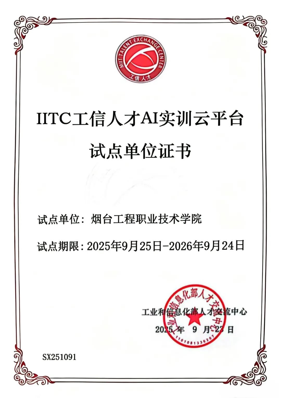 近日,工业和信息化部人才交流中心公布了“IITC工信人才AI实训云平台”首批应用院校名单,烟台工程职业技术学院凭借在数字化基础设施与产教融合方面的深厚积淀,成功入选。
