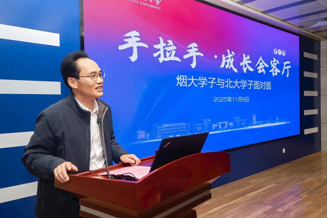 近日,烟台大学“手拉手.成长会客厅”首期活动举行。四位来自北京大学的优秀博士生跨越山海,与烟大学子面对面畅聊成长、共话未来,在传承校际援建情谊中为青春成长注入奋进力量。烟台大学党委常委、副校长姚昌出席活动并讲话。