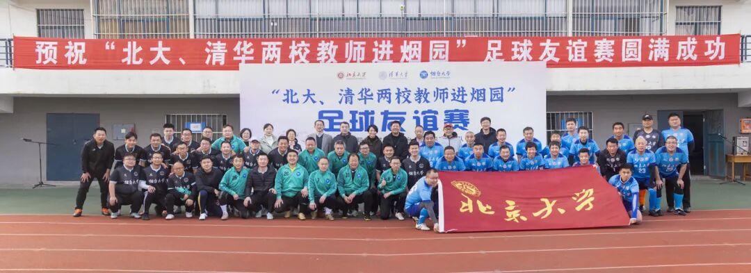 11月15日下午,一场别开生面的足球友谊赛在烟台大学体育场精彩上演,烟台大学党委副书记王强为比赛开球。北京大学教职工足球队与烟台大学教职工足球队同场竞技、以球会友,双方在激烈而友好的氛围中切磋球技,最终以2:2的比分握手言和。赛后,两队队员互赠签名足球。