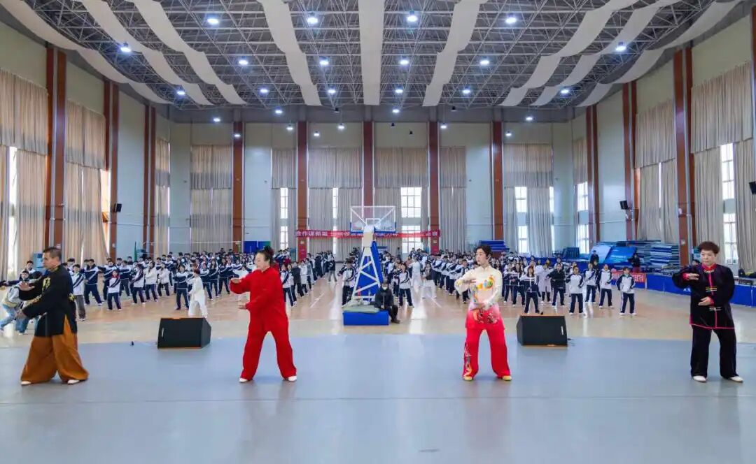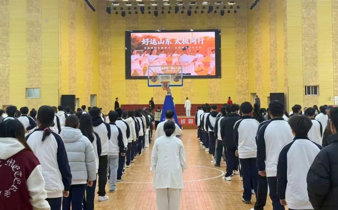 3月21日上午,“好运山东 太极同行”首届国际太极拳日活动在烟台职业学院体育馆举行。本次活动由烟台市体育局主办,烟台市武术运动协会、烟台职业学院承办,学校近300名学生参加。